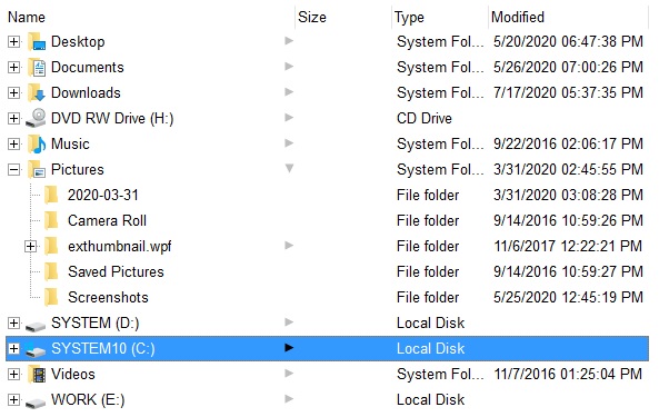 The following screen shots show the control ExploreFromHere property takes different values such as "C:\", "C:\>", "C:\><b>System (C:)</b>" or "C:\|D:\|E:\Exontrol"