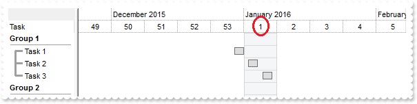 By default, the WeekNumberAs property is exSimpleWeekNumber, which indicates the first week starts on January 1st of a given year, week n+1 starts 7 days after week n. The FirstWeekDay property specifies the first day of the week where the week begins. Use WeekDays property to specify the name of the days in the week. Use the MonthNames property to specify the name of the months in the year. Use the AMPM property to specify the name of the AM and PM indicators. The FormatDate property formats a date. The NextDate property computes the next date based on the time unit. Use the FirstVisibleDate property to specify the first visible date in the chart.