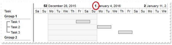 The following screen shot shows the weeks as exISO8601WeekNumber ( exWeek scale ):