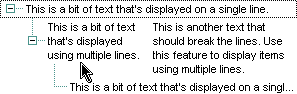 Use the CellVAlignment property to specify the vertically alignment for the cell's caption. Use the CellSingleLine property to specify whether a cell uses single or multiple lines. Use the CellHAlignment property to align horizontally the cell. The +/- button is aligned accordingly to the cell's caption. Use the Def(exCellVAlignment) property to specify the same vertical alignment for the entire column.