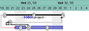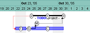 By default ( no bars are grouped ), if we move the bar 2, from Oct 19, to Oct 21 , we get the following ( the bar 1, 3, and M are not moved or resized ):