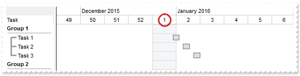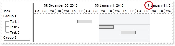 The following screen shot shows the weeks as exISO8601WeekNumber ( exWeek scale ):