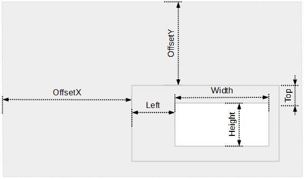 To define or specify the position / size of the rectanglular clip object you can use any of the following properties: