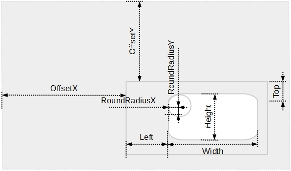 To define or specify the position / size of the rectanglular clip object you can use any of the following properties: