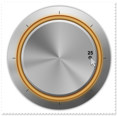 <BODY onload="Init()"> <SCRIPT FOR="Gauge1" EVENT="Change(Layer)" LANGUAGE="JScript"> Gauge1.ExtraCaption("Client",0) = Gauge1.FormatABC("`<sha ;;0><font ;12><b>` + (100 - value format `0`)",Gauge1.Value,null,null); Gauge1.ExtraCaption("Client",4) = Gauge1.FormatABC("value - 8",Gauge1.Layers.Item(9).LayerToClientX(Gauge1.Layers.Item(9).RotamoveCenterX,Gauge1.Layers.Item(9).RotamoveCenterY),null,null); Gauge1.ExtraCaption("Client",5) = Gauge1.FormatABC("value - 26",Gauge1.Layers.Item(9).LayerToClientY(Gauge1.Layers.Item(9).RotamoveCenterX,Gauge1.Layers.Item(9).RotamoveCenterY),null,null); </SCRIPT> <OBJECT CLASSID="clsid:91628F12-393C-44EF-A558-83ED1790AAD3" id="Gauge1"></OBJECT> <SCRIPT LANGUAGE="JScript"> function Init() { Gauge1.BeginUpdate(); Gauge1.PicturesPath = "C:\\Program Files\\Exontrol\\ExGauge\\Sample\\Design\\Circular\\Knob"; Gauge1.PicturesName = "`Layer` + str(value + 1) + `.png`"; Gauge1.Layers.Count = 11; Gauge1.AllowSmoothChange = 0; var var_Layer = Gauge1.Layers.Item(9); var_Layer.DefaultRotateAngle = -126; var_Layer.OnDrag = 3; var_Layer.RotateAngleToValue = "100 - (value / 360 * 100)"; var_Layer.ValueToRotateAngle = "(value)/100 * 360"; var_Layer.ValueToOffsetX = "value"; var_Layer.OffsetToValue = "value"; var_Layer.RotateAngleValid = "int(value / 360 * 100)/100 * 360"; var var_Layer1 = Gauge1.Layers.Item(7); var_Layer1.OnDrag = 2; var_Layer1.RotateType = 2; Gauge1.Value = 25; Gauge1.EndUpdate(); } </SCRIPT> </BODY>