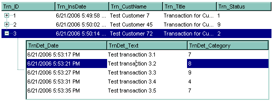 The following VB sample binds the master control to a table, and displays related tables when the user expands an item/record. The sample uses the DataSource property to bind a record set to the control. The InsertControlItem method inserts an ActiveX inside the item.