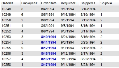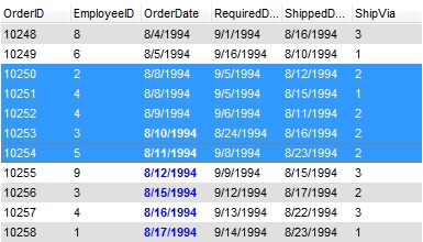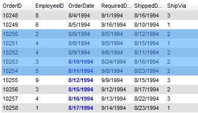 And if the SelBackMode property is set on exTransparent, the selected rows do not change their background/foreground colors as shown bellow: