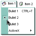 The control displays a bullet left to the item's caption. Use the Caption property to specify the caption of the item. The bullet is displayed only if the Check property is True. The control fires the Select event when the user selects an item. Use the Image property to assign an icon to an item. Use the CheckEffect property to change the visual effect of the check box or bullet inside the item.
