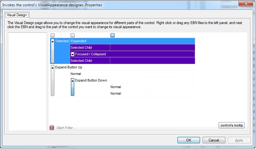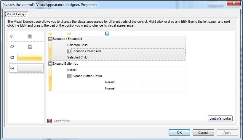 The following picture shows the control's VisualDesign form after applying some EBN objects: