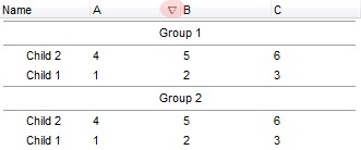 The following screen shots shows the control when no column is sorted: ( Group 1 and Group 2 has the SortableItem property on False )