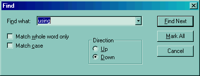 Use the AllowFind property to enable Find support into your control. By default the AllowFind property is True. Use the AllowReplace property to enable Replace support for your control. Use the Find method to find and highlight a string. Use the Caption property to change the captions for fields inside the control's Find dialog.