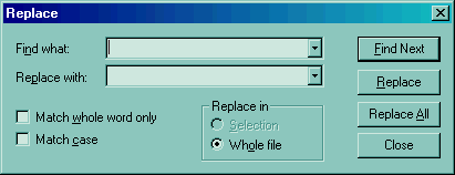 The following C++ sample displays the Replace dialog when the user clicks a button: