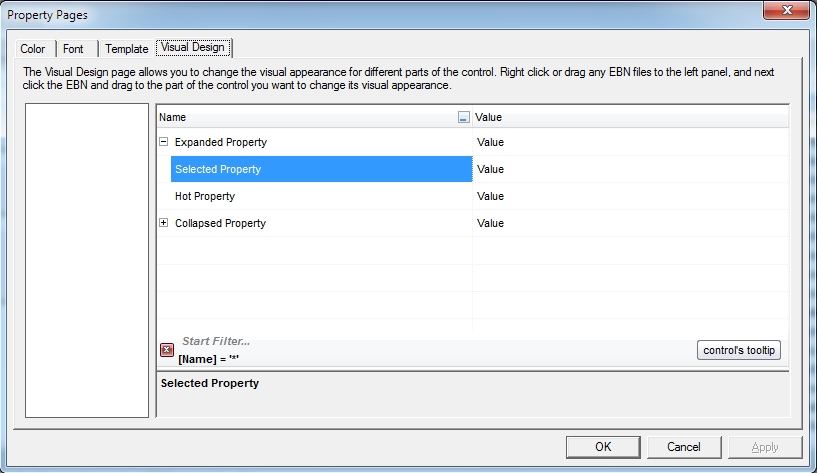The following picture shows the control's VisualDesign form after applying some EBN objects: