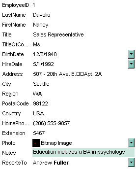 The following VC sample binds the "Employees" table in the "NWIND.MDB" database to the component, using an ADODB recordset: