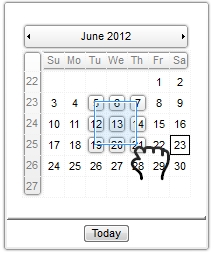 The following screen shot shows the rectangular selection, in the calendar panel: