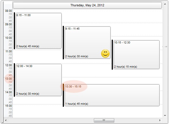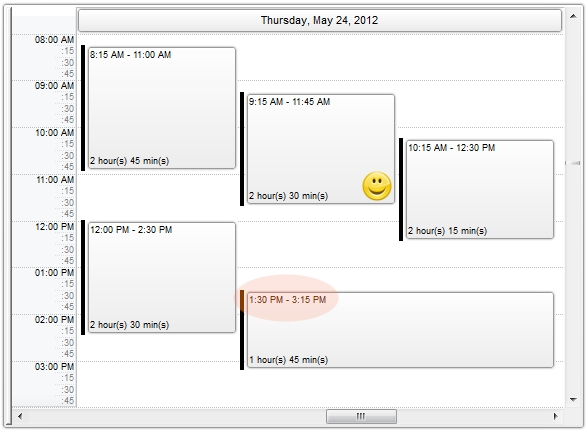 The following screen shot shows the short time format using the AM/PM time indicators ( by default, "<%h%>:<%nn%> <%AM/PM%>" ):