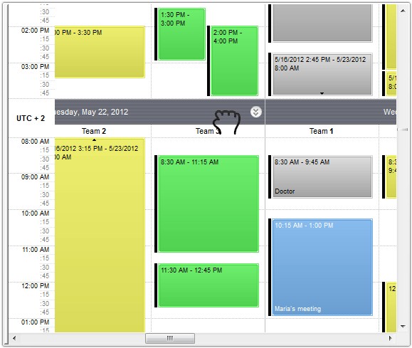 The following screen shot shows the schedule view at a new position: