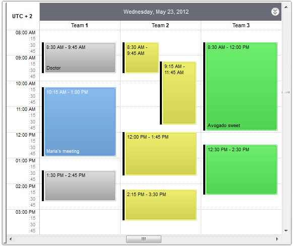 The following screen shot shows the schedule view at initial position: