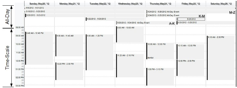 The following screen shot shows the All-Day events on the All-Day header ( ShowAllDayHeader property is False ):