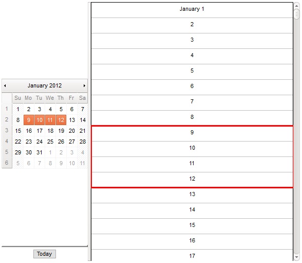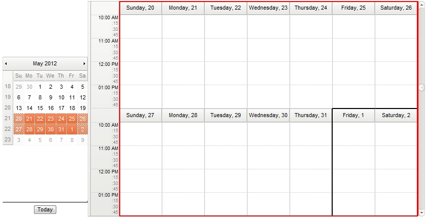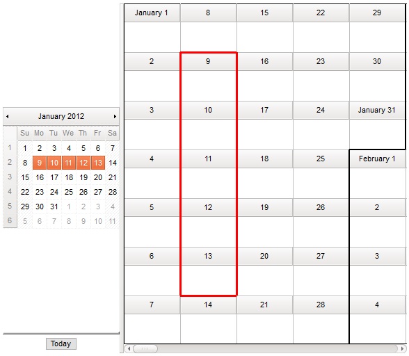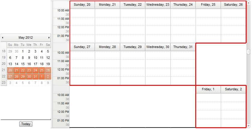 The following screen shot shows the schedule view, for ShowViewCompact property on exViewCalendarCompact: