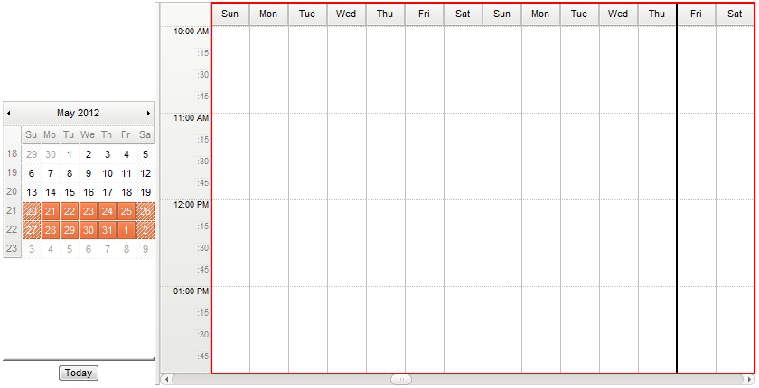 The following screen shot shows the schedule view, for ShowViewCompact property on exViewSingleWeek: