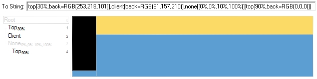 We define BodyBackgroundExt property such as "left[10%](top[90%,back=RGB(0,0,0)]),top[30%,back=RGB(254,217,102)],client[back=RGB(91,156,212)]", and it looks as: