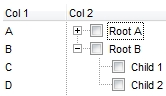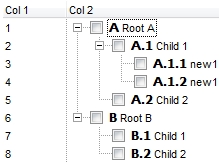 extreecube1.BeginUpdate(); exontrol.EXTREECUBELib.FaceTree var_FaceTree = extreecube1.FrontFace.CreateTree(); var_FaceTree.ItemPadding = 10; var_FaceTree.LinesAtRoot = exontrol.EXTREECUBELib.LinesAtRootEnum.exGroupLines; var_FaceTree.DrawGridLines = exontrol.EXTREECUBELib.GridLinesEnum.exRowLines; var_FaceTree.Columns.Add("Default").Alignment = exontrol.EXTREECUBELib.AlignmentEnum.LeftAlignment; exontrol.EXTREECUBELib.Column var_Column = var_FaceTree.Columns.Add("Pos"); var_Column.Position = 0; var_Column.Alignment = exontrol.EXTREECUBELib.AlignmentEnum.LeftAlignment; var_Column.FormatColumn = "1 rpos ``"; var_Column.Width = 24; exontrol.EXTREECUBELib.Items var_Items = var_FaceTree.Items; exontrol.EXTREECUBELib.Items var_Items1 = var_Items.Add("Root 1").Items; var_Items1.Add("Child 1"); var_Items1.Add("Child 2"); var_Items1.Add("Child 3"); exontrol.EXTREECUBELib.Items var_Items2 = var_Items.Add("Root 2").Items; var_Items2.Add("Child 1"); var_Items2.Add("Child 2"); var_Items2.Add("Child 3"); var_Items.ExpandAll(); extreecube1.EndUpdate();